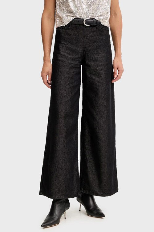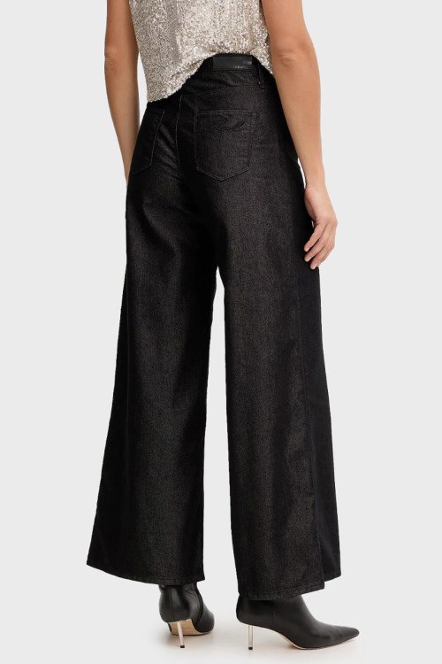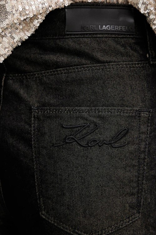 Детали: Женские черные широкие джинсы от Karl Lagerfeld (Карл Лагерфельд). Пяти-карманная модель, пояс с петлями для ремня, нашивка с логотипом сзади на поясе, вышитый логотип на заднем кармане, широкий крой, укороченная длина