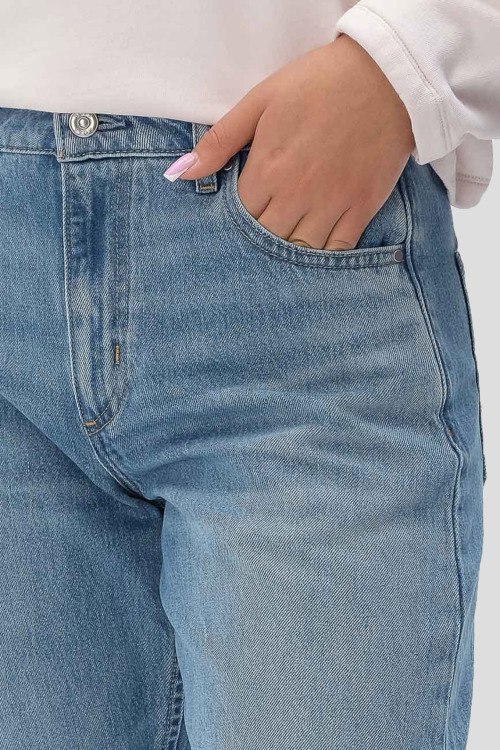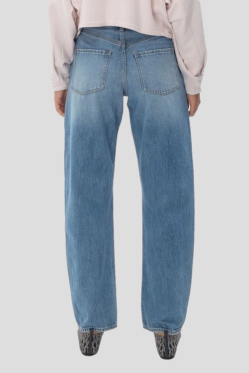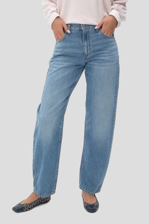 Детали: Женские голубые джинсы-бочонки Daelya от Hugo Boss (Хуго Босс). Пяти-карманная модель, дизайн с потертостями, пояс с петлями для ремня, крой-бочонки, полная длина
