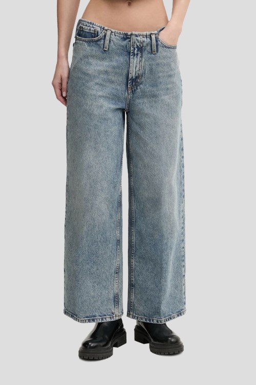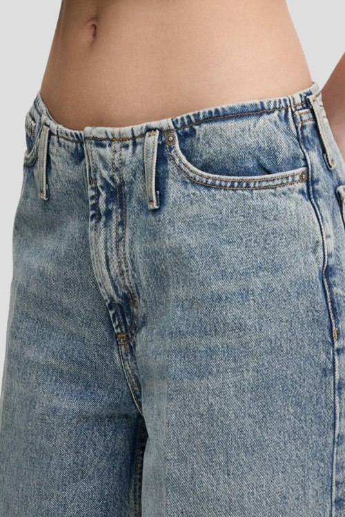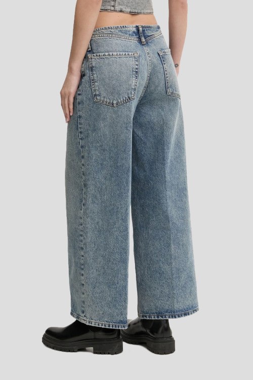 Детали: Женские голубые широкие джинсы Gitane от Hugo Boss (Хуго Босс). Пяти-карманная модель, выстиранный эффект, пояс с петлями для ремня, крой Relaxed-fit, полная длина