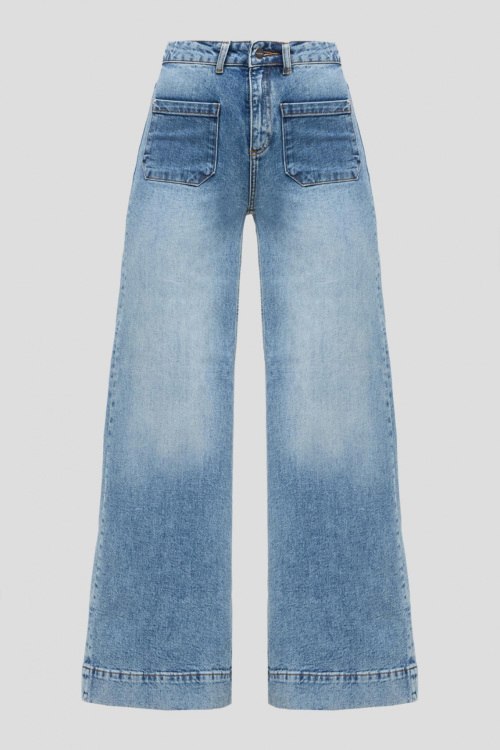 Детали: Женские голубые джинсы Wide Leg от Rich & Royal (Рич энд Роял). Передние и задние карманы, пояс с петлями для ремня, нашивка с логотипом сзади на поясе, широкий фасон, полная длина. Обхват пояса: для размера 26 - 70 см, обхват бедер: для размера 26 - 96 см, длина штанины: для размера 26 - 108 см, длина по шаговому шву: для размера 26 - 80 см