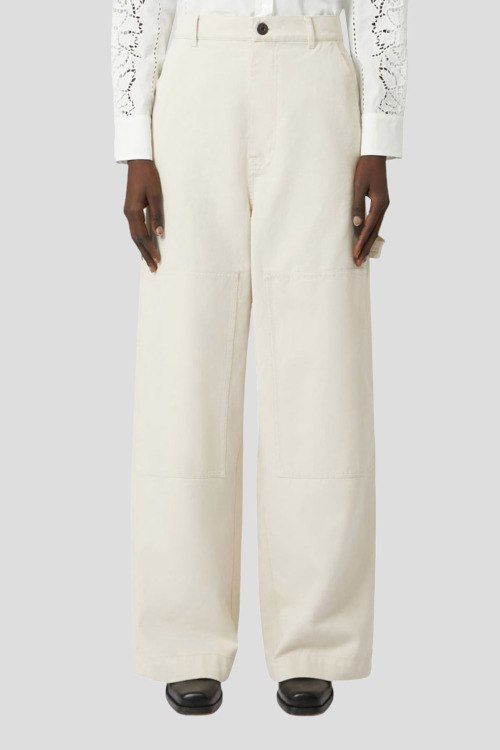 Детали: Женские широкие джинсы молочного оттенка от Max Mara Weekend (Макс Мара Викенд). Боковые и задние карманы, пояс с петлями для ремня, нашивка с логотипом на заднем кармане, широкий крой, полная длина