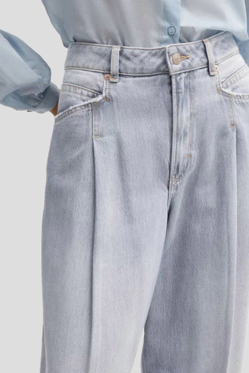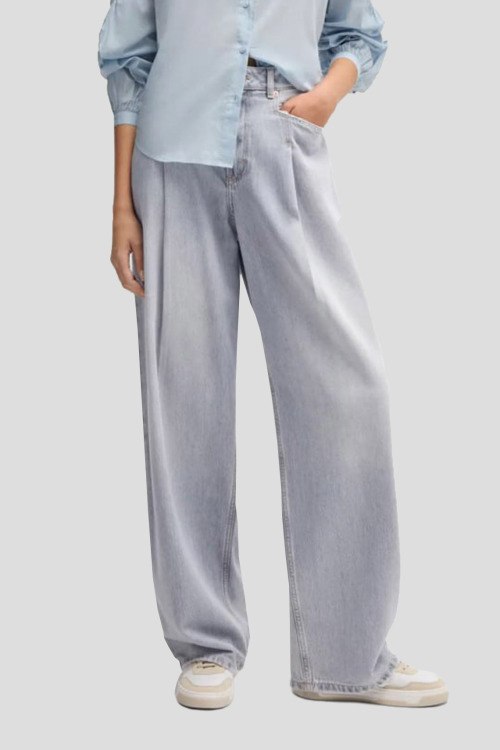 Детали: Женские серые джинсы из хлопка и лиоцелла от Hugo Boss (Хуго Босс). Классическая длина, высокая посадка, застежка на молнию и пуговицу, четыре кармана, расклешенная модель, петли в поясе для ремня