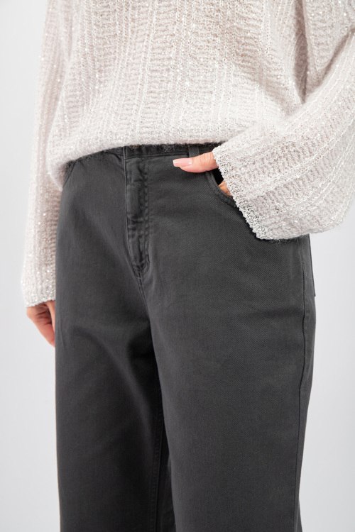 Женские темно-серые широкие джинсы от Panicale Cashmere (Паникале Кашемир). Пяти-карманная модель, пояс с петлями для ремня, широкий крой, полная длина. Замеры для размера 42: длина: 111 см, ширина штанины вверху: 30 см, ширина по поясу: 40 см, ширина по бёдрам: 45 см, высота сидения: 35 см.