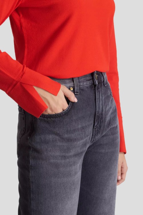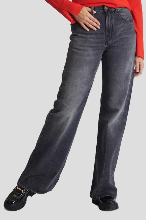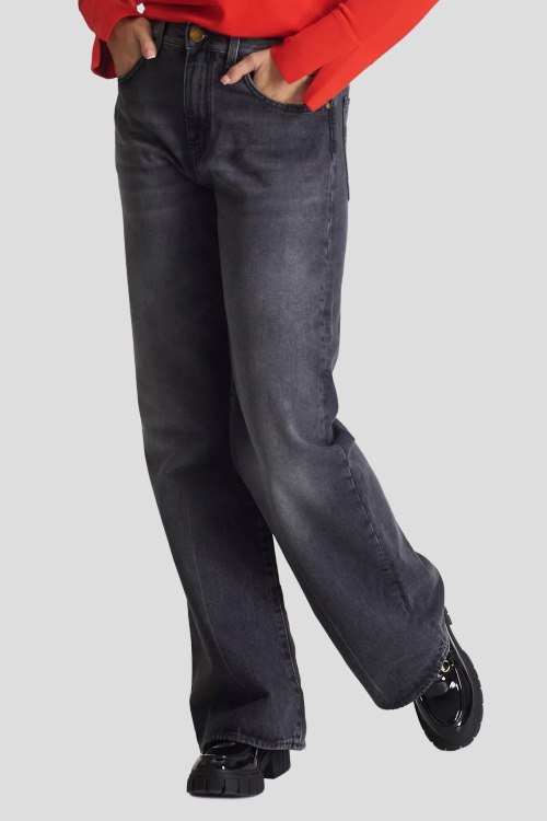 Детали: Женские темно-серые джинсы из хлопка от Pinko (Пинко). Расклешенный дизайн, средняя посадка, застежка на молнию и пуговицу, пять карманов, петли в поясе для ремня, логотип бренда