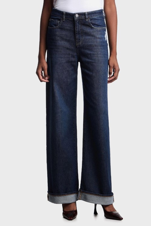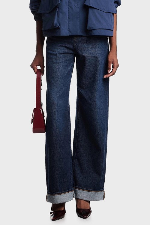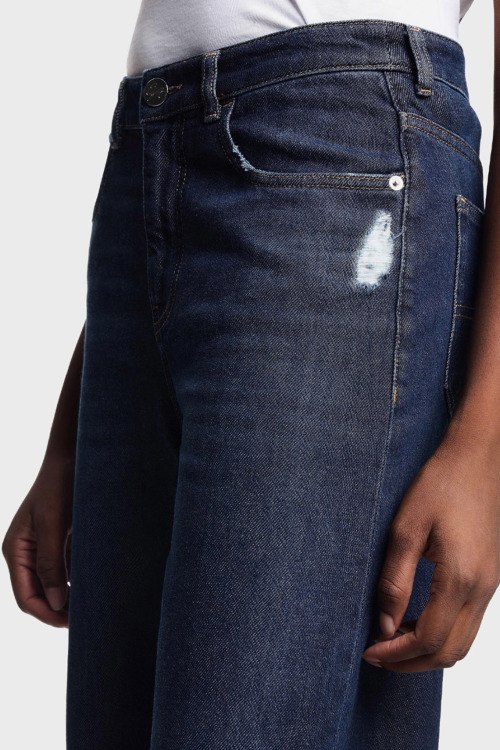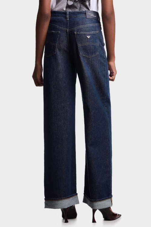 Детали: Женские темно-синие джинсы из хлопкового микса от Emporio Armani (Эмпорио Армани). Прямой крой, высокая посадка, застежк ана молнию и пуговицу, пять кармнаов, петли в поясе для ремня