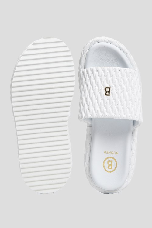 Детали: Женские белые шлепанцы Sorrento из натуральной кожи от Bogner (Богнер). Закругленный носок, широкий ремешок, плетенный дизайн, логотип бренда, дизайн на платформе высотой 5 см