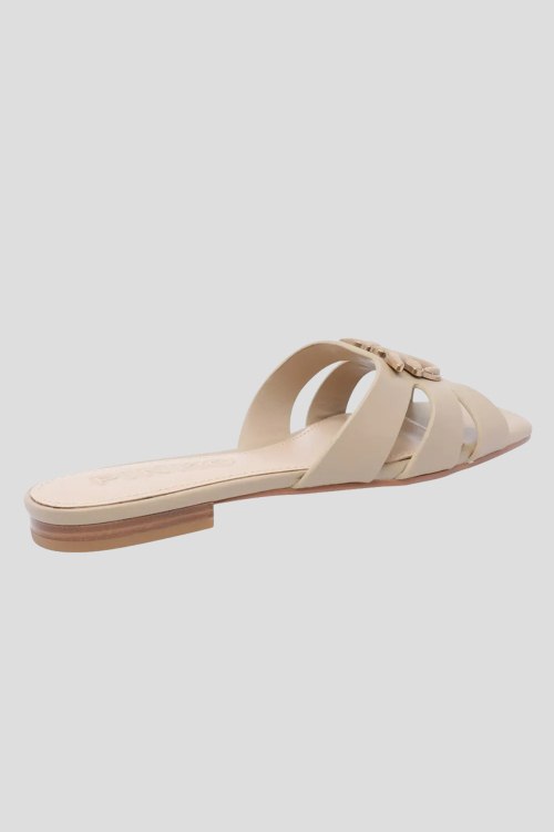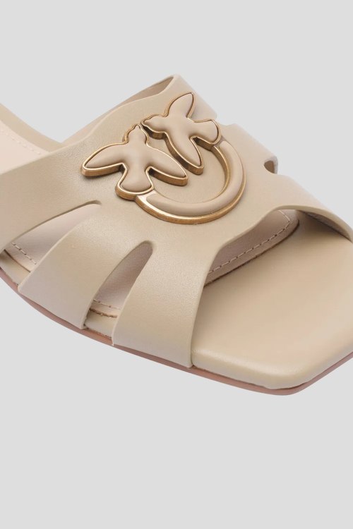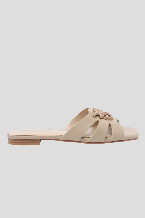 Детали: Женские бежевые шлепанцы Marli 09 из натуральной кожи от Pinko (Пинко). Квадратный носок, кожаная стелька с логотипом, спереди брендированная пряжка. Высота каблука: 1,5 см