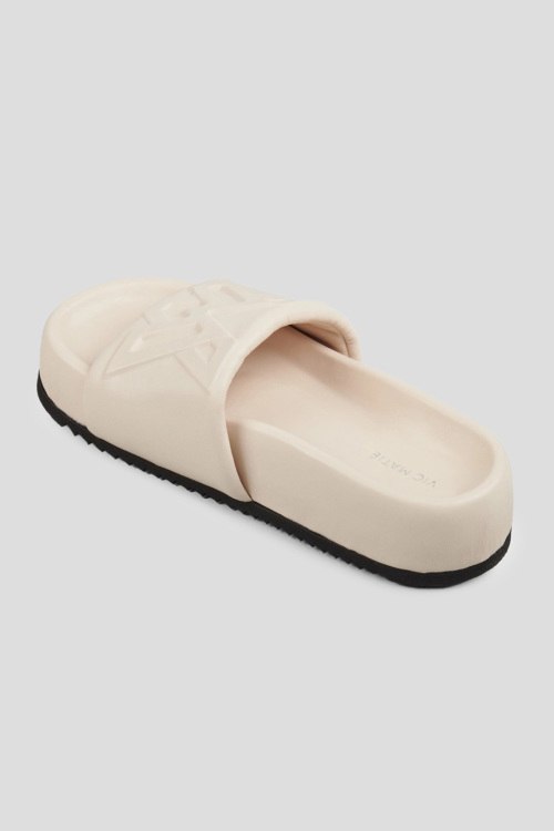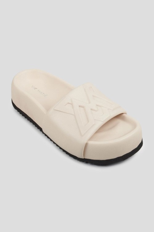 Детали: Женские светло-бежевые шлепанцы из натуральной кожи от Vic Matie (Вик Матие). Закругленный носок, широкий ремешок с логотипом бренда, анатомическая стелька. Платформа: 5 см
