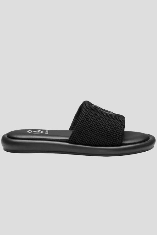 Детали: Женские черные шлепанцы Portofino из натуральной кожи и текстиля от Bogner (Богнер). Закругленный носок, спереди широкий ремешок, вышитый логотип бренда, плоская подошва