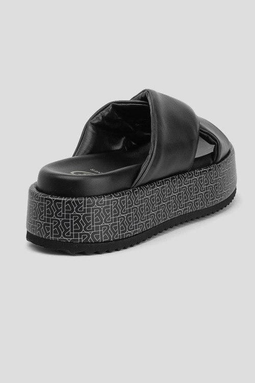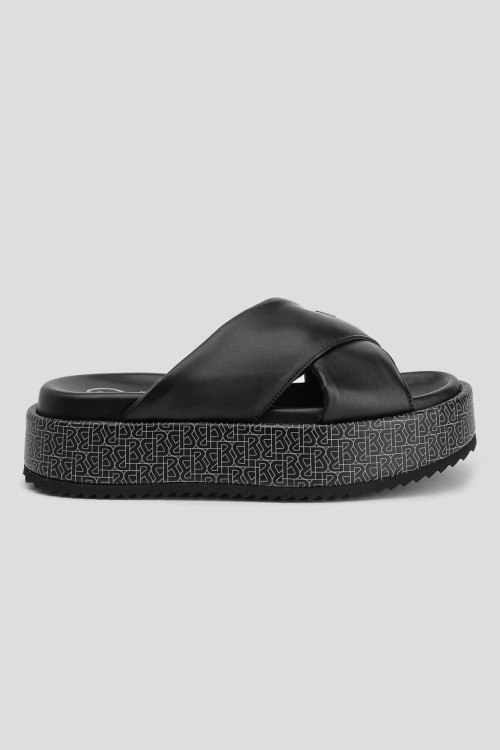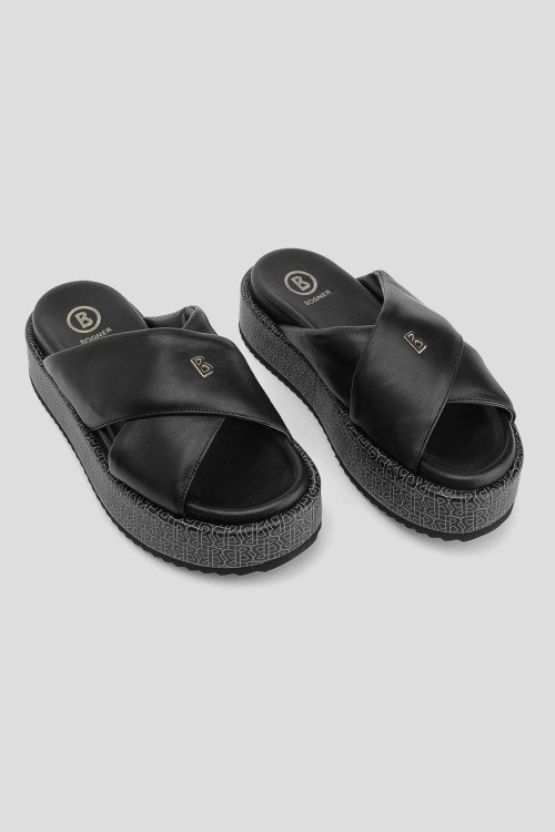 Женские черные шлепанцы Sorento из натуральной кожи от Bogner (Богнер). Закругленный носок, модель на платформе, перекрестные широкие ремешки, логотип бренда
