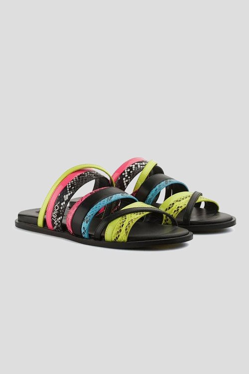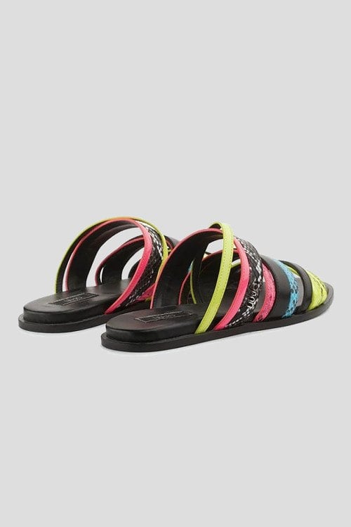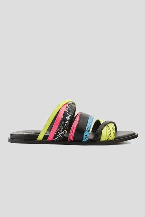 Детали: Женские черные шлепанцы из экокожи Thea 03 от Liu Jo (Лиу Джо). Яркие ремешки со змеиным принтом, значок с логотипом, стелька с логотипом, закругленный носок, плоская подошва