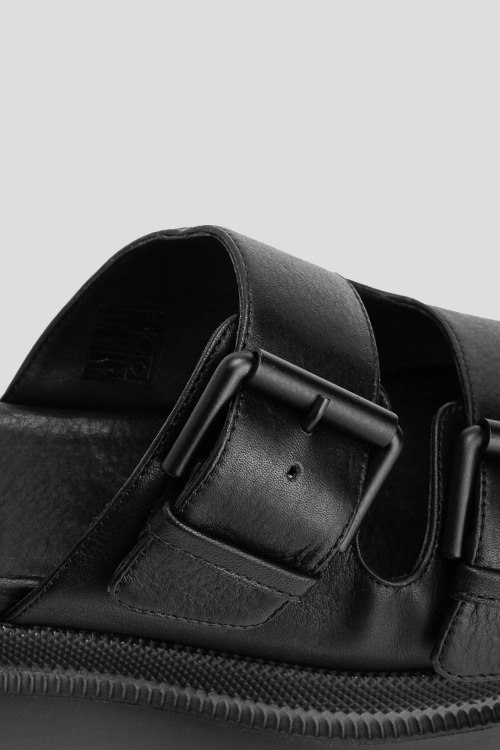Женские черные шлепанцы из натуральной кожи от Vic Matie (Вик Матие). Квадратный носок, регулируемые широкие ремешки, кожаная стелька с логотипом, массивная подошва