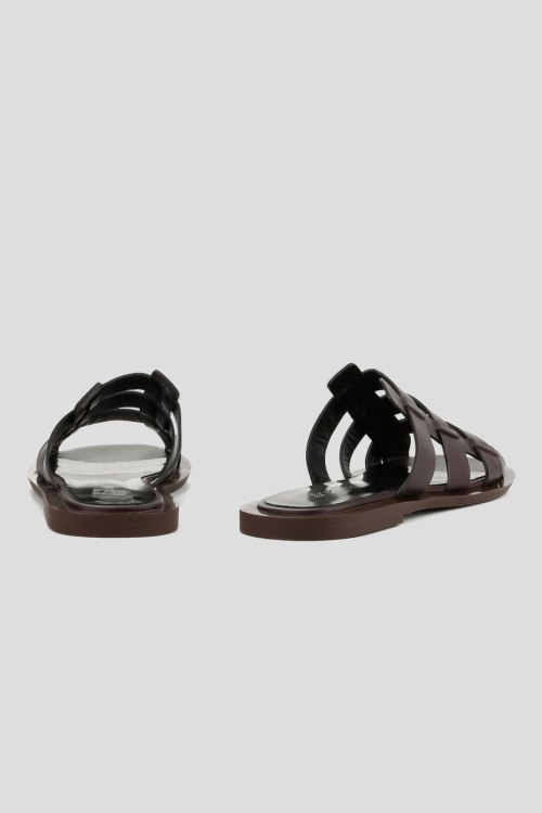 Детали: Женские темно-коричневые кожаные шлепанцы от Le Berdes (Ле Бердес). Модель из гладкой кожи, ремешки с переплетом, закругленный носок, плоская подошва. Замеры: длина стельки: размер 35 (23 см), 36 (23,5 см), 37 (24 см), 38 (24,5 см), 39 (25 см),40 (25,5)