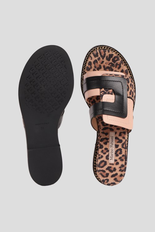 Детали: Женские леопардовые шлепанцы из натуральной кожи и замши от Marino Fabiani (Марино Фабиани). Закругленный носок, комбинация цветов, логотип бренда. Измерения: танкетка 3.5 см