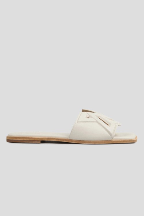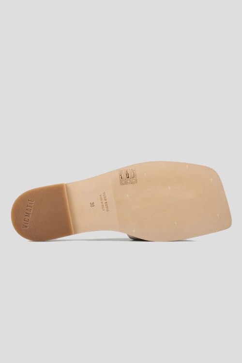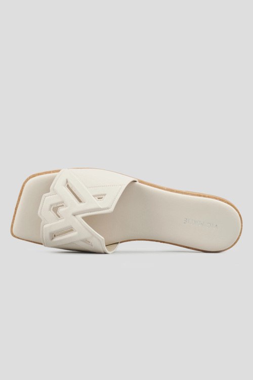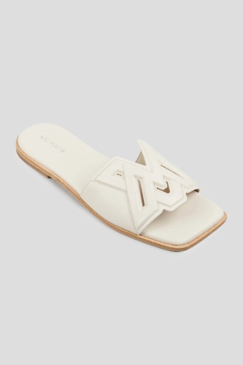 Детали: Женские шлепанцы молочного оттенка из натуральной кожи от Vic Matie (Вик Матие). Квадратный носок, широкий фигурный ремешок с логотипом бренда, плоская подошва. Высота каблука: 1 см