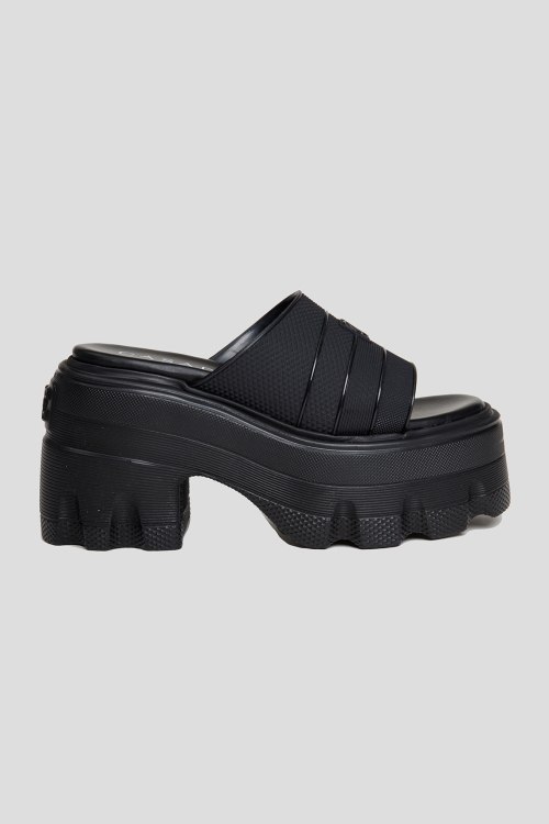 Детали: Женские черные резиновые шлепанцы от Casadei (Касадей). Широкий ремешок с логотипом спереди, закугленный носок, кожаная стелька с логотипом, массивная подошва. Замеры: высота каблука: 10.5 см, высота платформы: 6.5 см