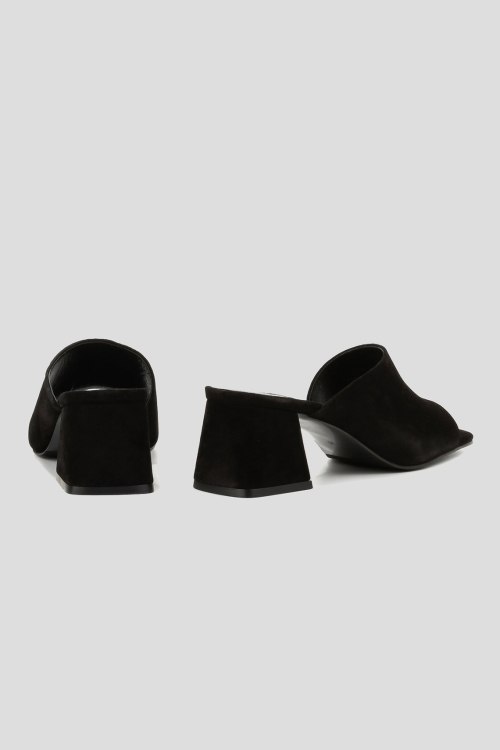 Детали: Женские черные замшевые шлепанцы от Le Berdes (Ле Бердес). Широкий ремешок, квадратный носок, широкий каблук. Замеры: длина стельки: размер 35 (23 см), 36 (23,5 см), 37 (24 см), 38 (24,5 см), 39 (25 см),40 (25,5)