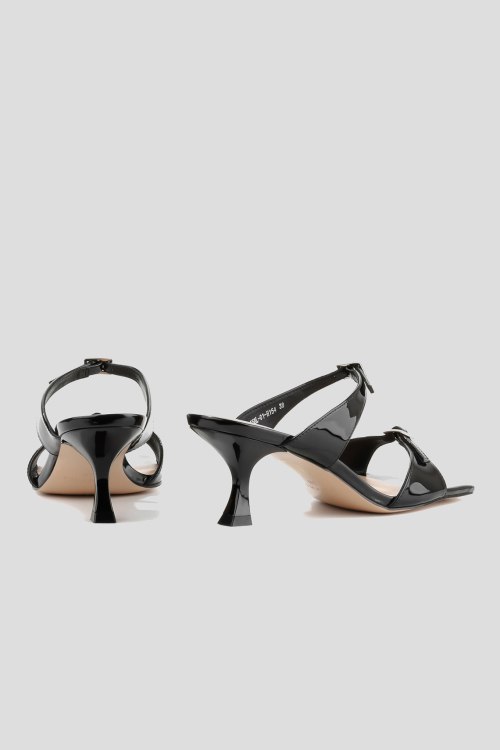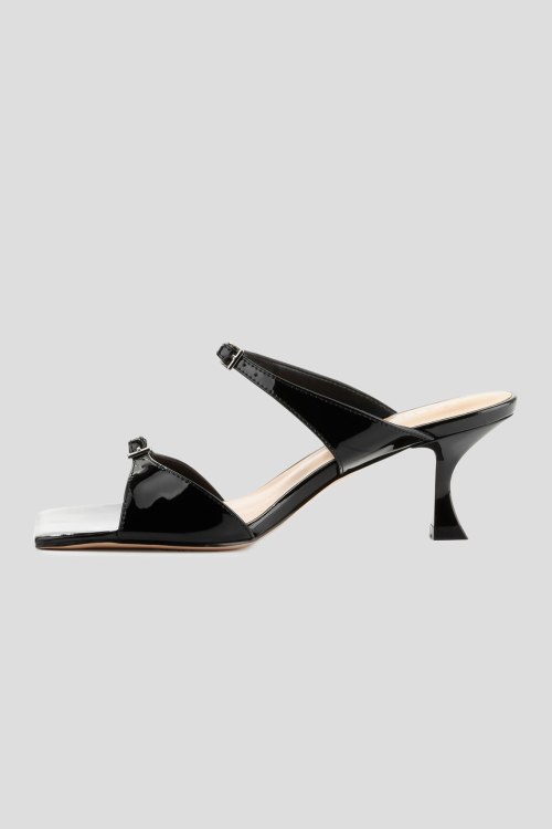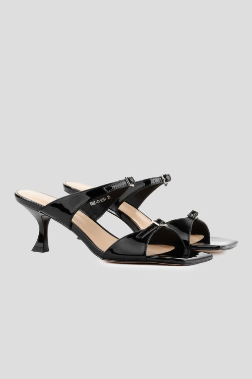 Детали: Женские черные лаковые шлепанцы от Le Berdes (Ле Бердес). Тонкие ремешки с пряжкой, квадратный носок, кожаная стелька. Высота каблука: 6 см. Замеры: длина стельки: размер 35 (23 см), 36 (23,5 см), 37 (24 см), 38 (24,5 см), 39 (25 см),40 (25,5)