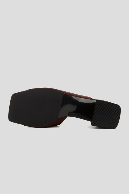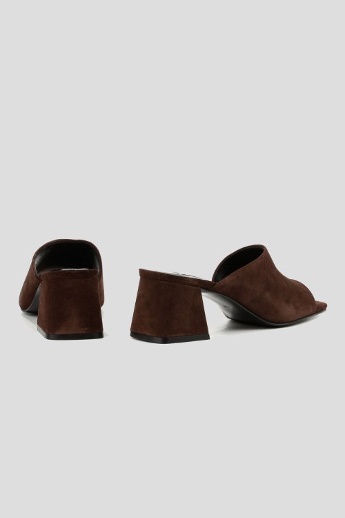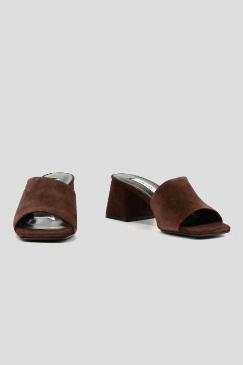 Детали: Женские темно-коричневые замшевые шлепанцы от Le Berdes (Ле Бердес). Широкий ремешок, квадратный носок, широкий каблук. Замеры: длина стельки: размер 35 (23 см), 36 (23,5 см), 37 (24 см), 38 (24,5 см), 39 (25 см),40 (25,5)