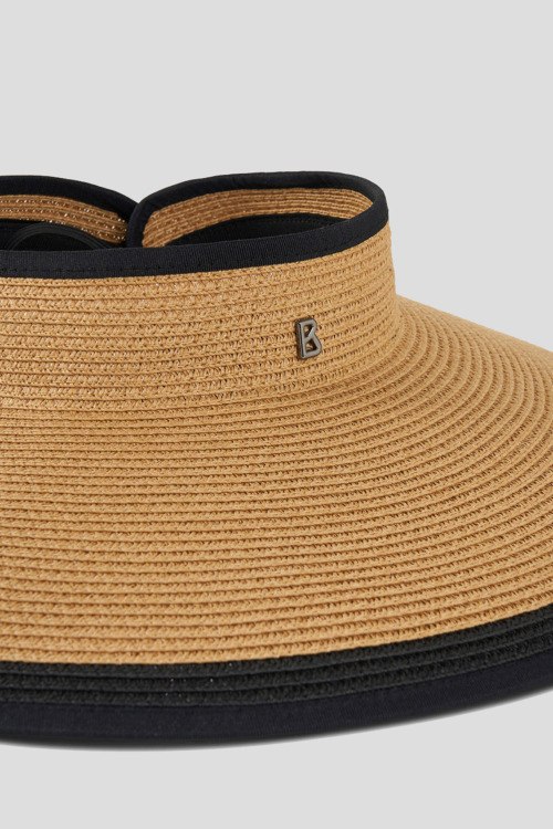 Детали: Женский коричневый козырек Margie из рафии от Bogner (Богнер). Широкие поля, контрастная окантовка, логотип бренда, застежка-липучка, логотип бренда