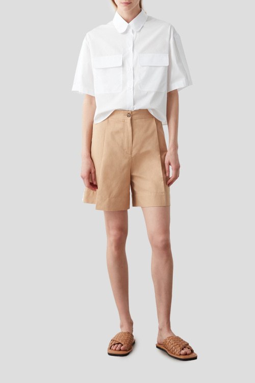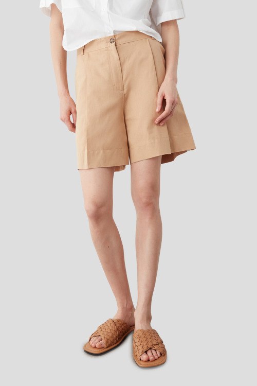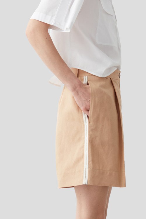 Детали: Женские бежевые шорты из льна и хлопка от Colmar (Колмар). Высокая посадка, застежка на молнию и пуговицу, брендированные лампасы, два кармана. Замеры: обхват пояса: для размера 38 - 68 см, обхват бедер: для размера 38 - 100 см, длина штанины: для размера 38 - 42 см, длина по шаговому шву: для размера 38 - 12,5 см