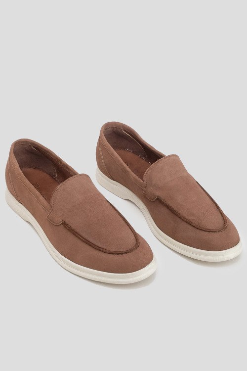 Детали: Женские коричневые лоферы из натуральной замши от Brecos (Брекоз). Миндалевидный носок, кожаная стелька с логотипом бренда, контрастная подошва