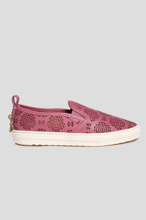 Детали: Женские слипоны цвета фуксии из натуральной кожи от Coach (Коуч). Закругленный носок, перфорированный дизайн по всей поверхности изделия, кожаная стелька с логотипом бренда, петля для подтягивания с металлической брендированной подвеской, белая резиновая подошва. Длина изделия по стельке на размер 36: 23 см