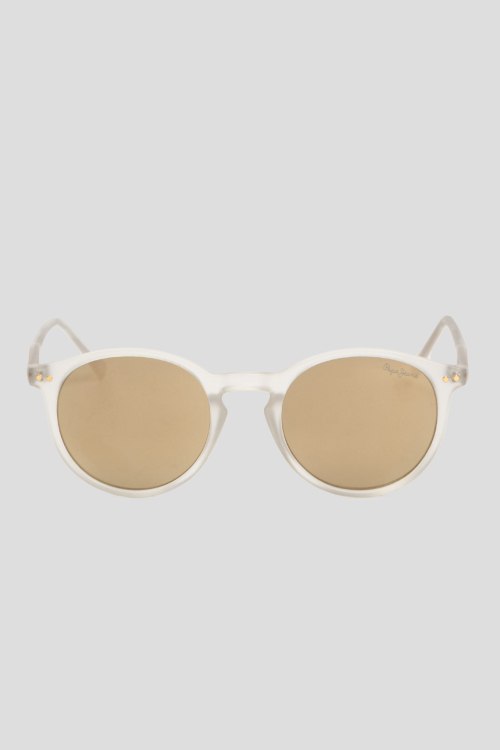 Детали: Женские белые солнцезащитные очки от Pepe Jeans (Пепе Джинс). Пластиковая оправа, закругленная форма, бежевая линза. Комплектация: чехол и салфетка