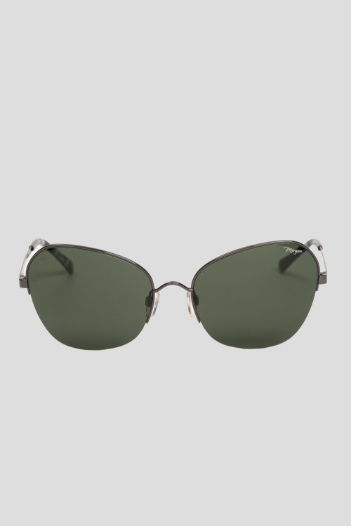 Детали: Женские черные солнцезащитные очки от Morgan (Морган). Темная металлическая оправа, закругленная форма, темная линза. Комплектация: чехол и салфетка