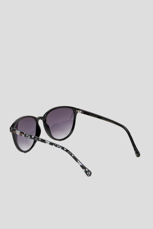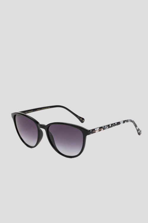 Детали: Женские черные солнцезащитные очки от Ted Baker (Тед Бейкер). Пластиковая оправа, закругленная форма, затемненная линза. Комплектация: чехол и салфетка