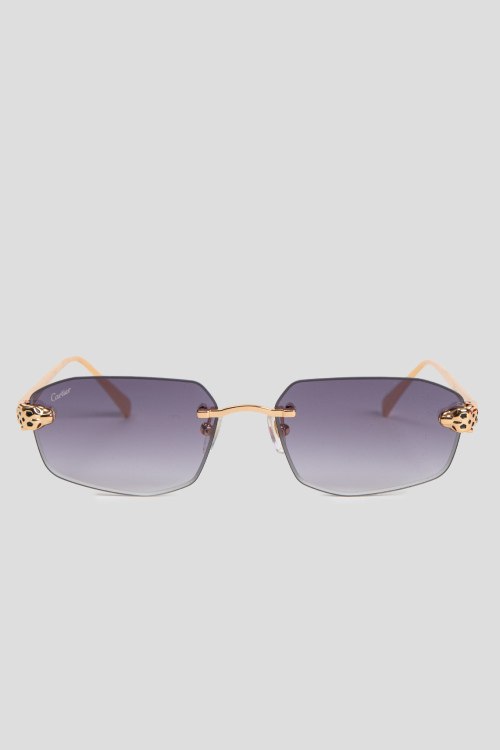 Детали: Женские фиолетовые солнцезащитные очки от Cartier (Картье). Затемненные линзы с логотипом, золотистая металлическая оправа с легендарной пантерой. В комплекте брендовый чехол и коробка. Размеры: 60*18*145