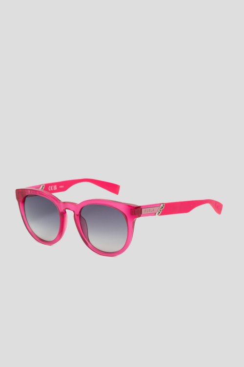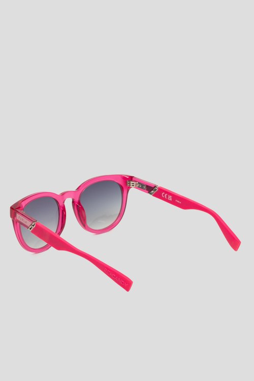 Детали: Женские солнцезащитные очки цвета фуксии от Furla (Фурла). Пластиковая оправа, закругленная форма, затемненная линза. Комплектация: чехол и салфетка