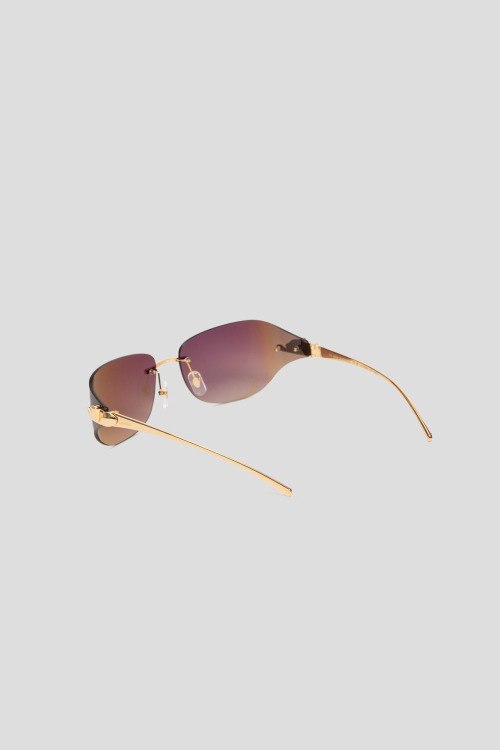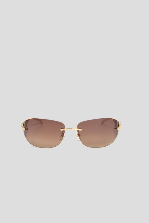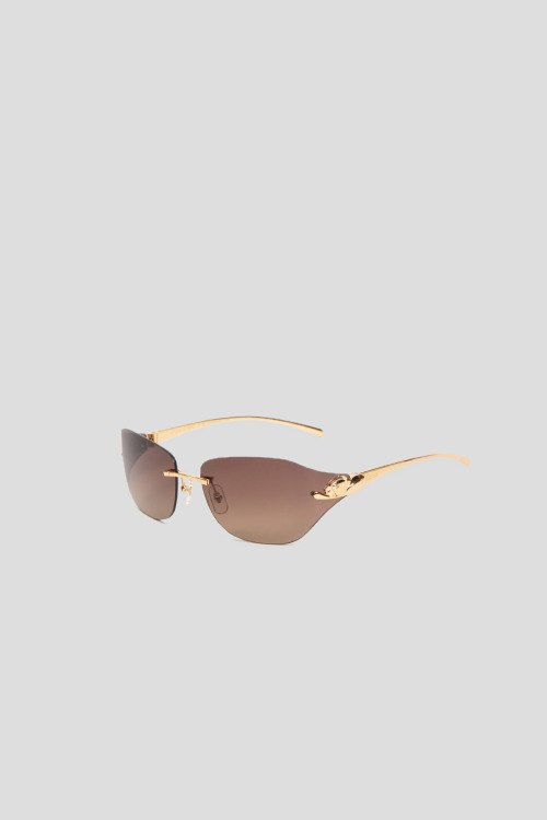 Детали: Женские солнцезащитные очки от Cartier (Картье). Золотистые дужки, модель без оправы, удлиненная форма линзы. Комплектация: чехол, салфетка, коробка, пакет. Размеры: 60*18*110