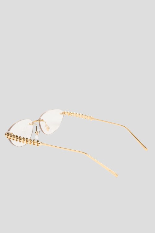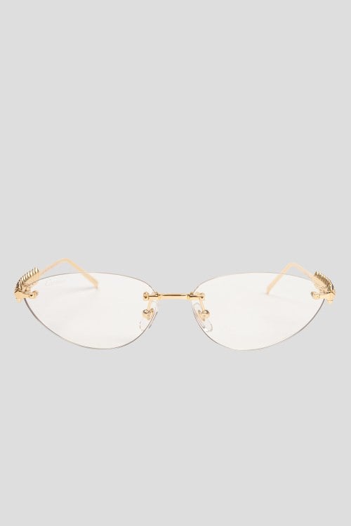Детали: Женские солнцезащитные очки cat-eye от Cartier (Картье). Форма кошачий глаз, золотистая оправа, белая линза с логотипом, декорированные дужки. Комплектация: чехол, салфетка, коробка. Размеры: 55*15*140