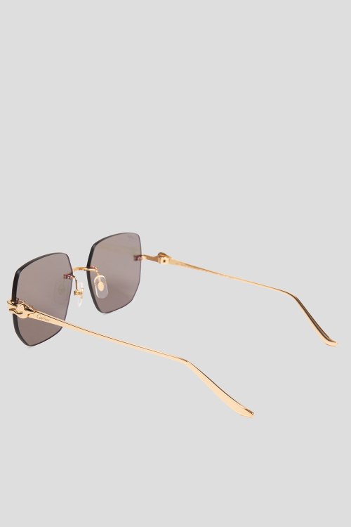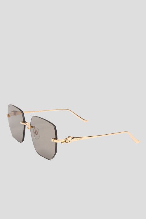 Детали: Женские солнцезащитные очки от Cartier (Картье). Квадратная форма, золотистая оправа, серая линза с логотипом, декорированные дужки. Комплектация: чехол, салфетка, коробка. Размеры: 57*16*135