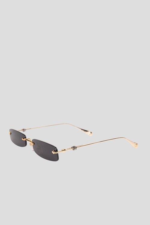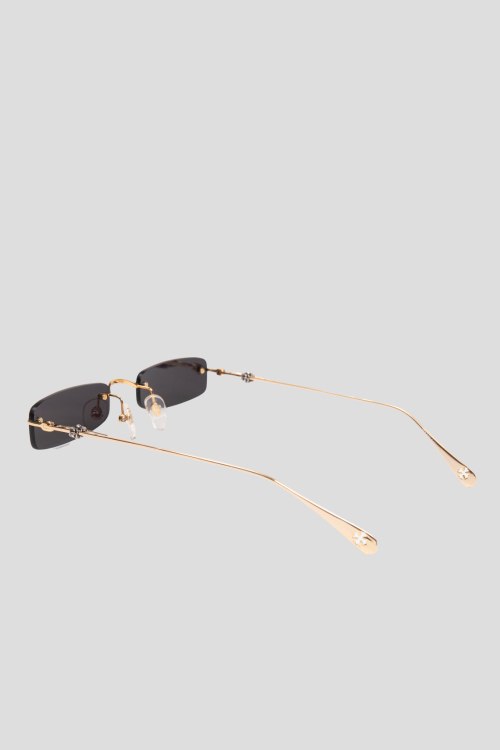 Детали: Женские солнцезащитные очки от Chrome Hearts (Хром Хартс). Прямоугольная форма, золотистая оправа, темная линза. Комплектация: чехол, салфетка, пакет. Размеры: 54*20*145