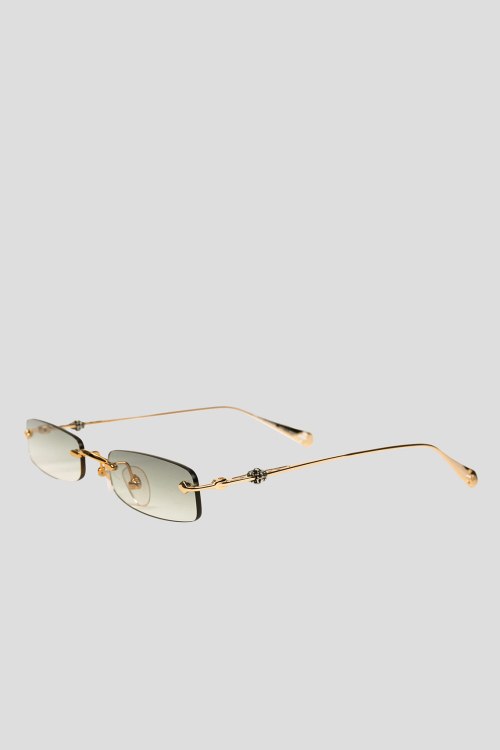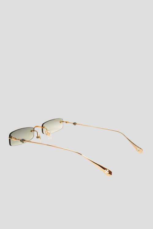 Детали: Женские солнцезащитные очки от Chrome Hearts (Хром Хартс). Прямоугольная форма, золотистая оправа, светлая линза. Комплектация: чехол, салфетка, пакет. Размеры: 54*20*145