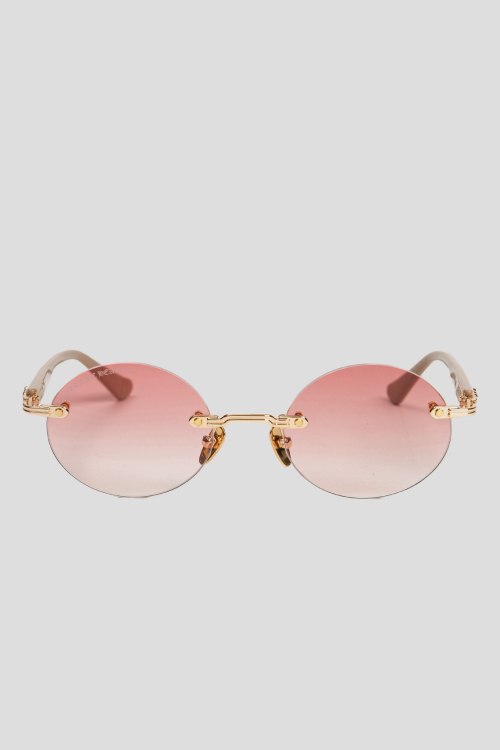 Детали: Женские солнцезащитные очки от Chrome Hearts (Хром Хартс). Закругленная форма, золотистая оправа, розовая линза. Комплектация: чехол, салфетка, коробка. Размеры: 53*21*151