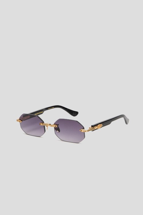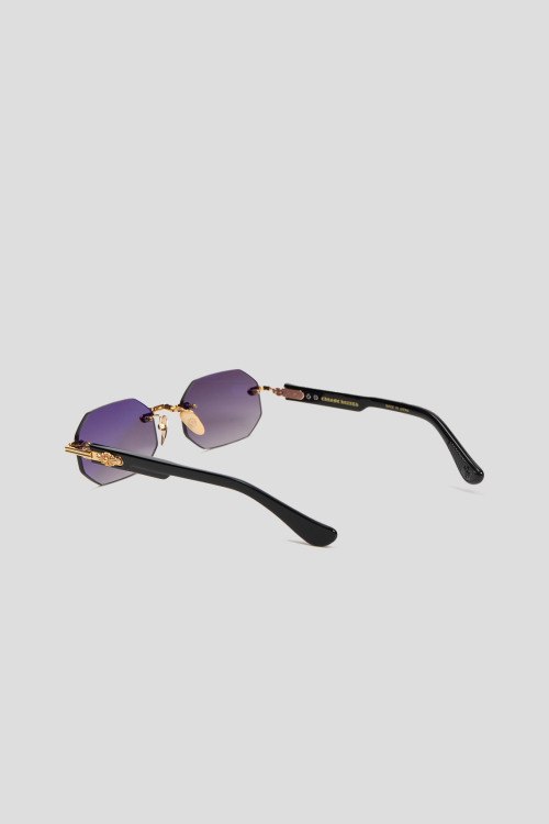 Детали: Женские солнцезащитные очки от Chrome Hearts (Хром Хартс). Черные дужки с золотистыми металлическими деталями, геометричная форма, темная линза с градиентом. Комплектация: чехол, салфетка, коробка, пакет. Размеры: 55*21*146