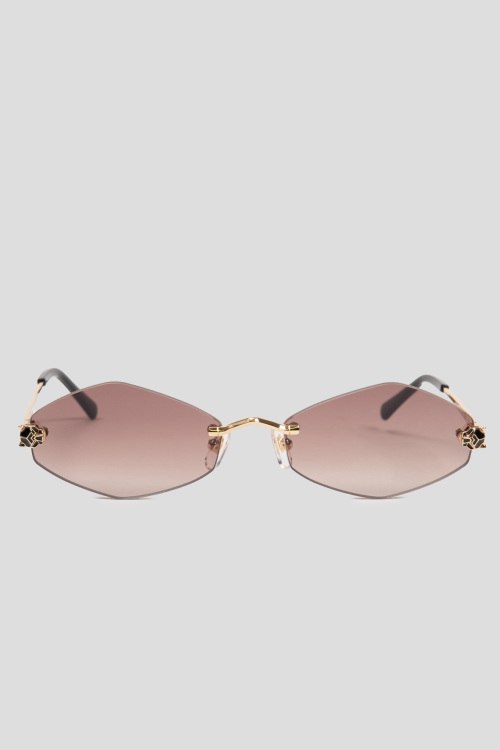 Детали: Женские светло-коричневые солнцезащитные очки от Cartier (Картье). Золотистая оправа, светло-коричневая линза, декорированные дужки. Размер: 58*18*140