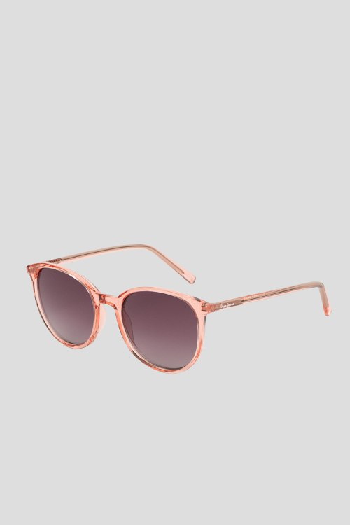 Детали: Женские персиковые солнцезащитные очки от Pepe Jeans (Пепе Джинс). Пластиковая оправа, закругленная форма, затемненная линза. Комплектация: чехол и салфетка
