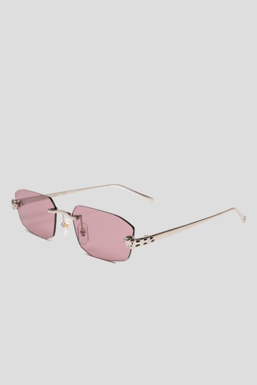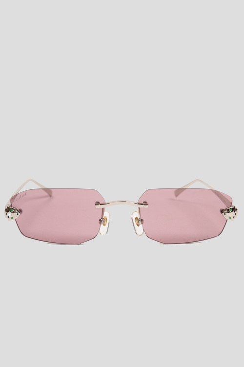 Детали: Женские розовые солнцезащитные очки от Cartier (Картье). Серебристая оправа, розовая линза, декорированные дужки. Комплектация: чехол, салфетка, коробка. Размер: 54*20*140