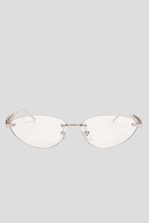 Детали: Женские солнцезащитные очки cat-eye от Cartier (Картье). Форма кошачий глаз, серебристая оправа, белая линза с логотипом, декорированные дужки. Комплектация: чехол, салфетка, коробка. Размеры: 55*15*140