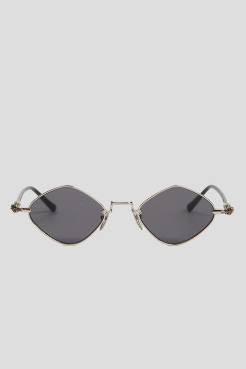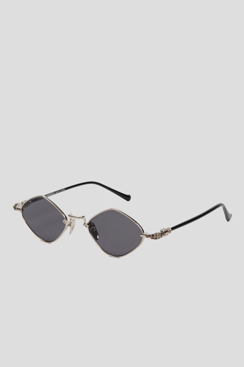 Детали: Женские солнцезащитные очки Diamond Dog от Chrome Hearts (Хром Хартс). Серебристая оправа, ромбовидная затемненная линза. Комплектация: чехол, салфетка, коробка. Размеры: 50*22*145