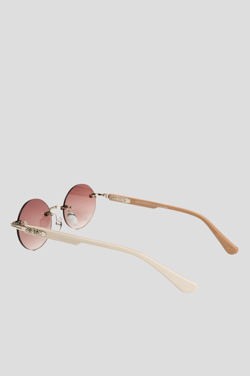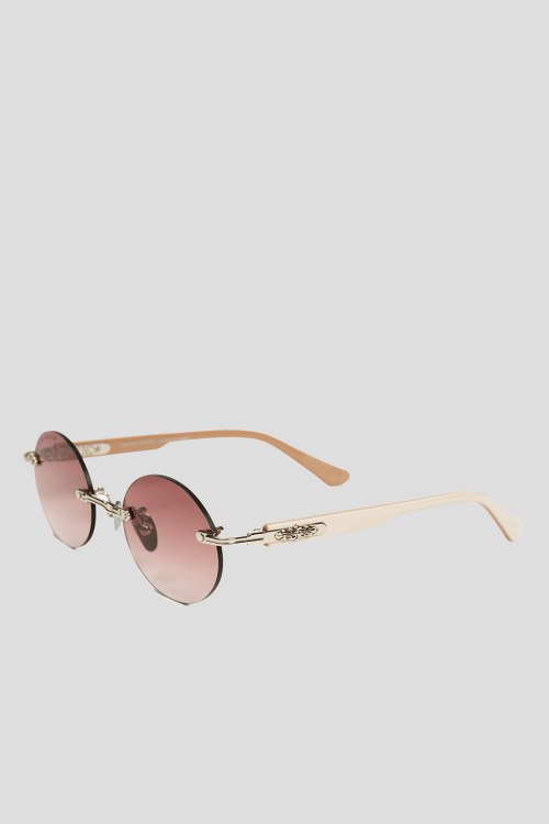 Детали: Женские солнцезащитные очки от Chrome Hearts (Хром Хартс). Закругленная форма, серебристая оправа, бежевая линза с логотипом. Комплектация: чехол, салфетка, коробка. Размеры: 53*21*151