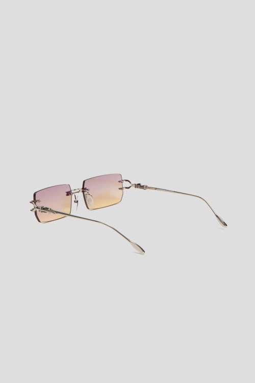 Детали: Женские солнцезащитные очки прямоугольной формы от Chrome Hearts (Хром Хартс). Серебристые дужки, прямоугольная форма, светлая линза с градиентом. Комплектация: чехол, салфетка, коробка, пакет. Размеры: 58*15*134