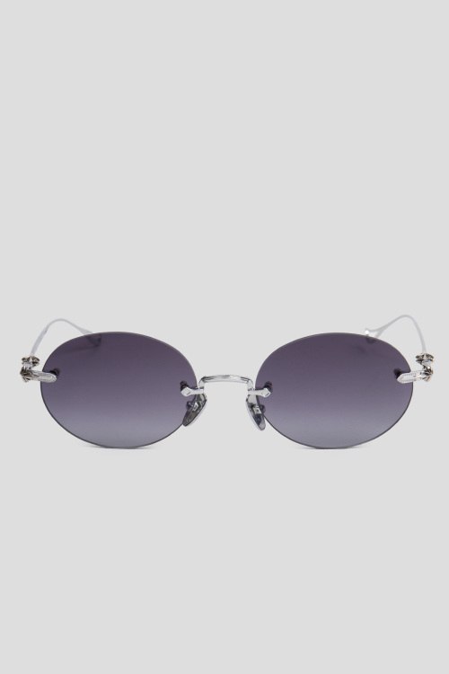 Детали: Женские серебристые солнцезащитные очки от Chrome Hearts (Хром Нартс). Темные линзы, серебристая металлическая оправа, декорированные дужки. В комплекте брендовый чехол и коробка. Размеры: 55*20*145