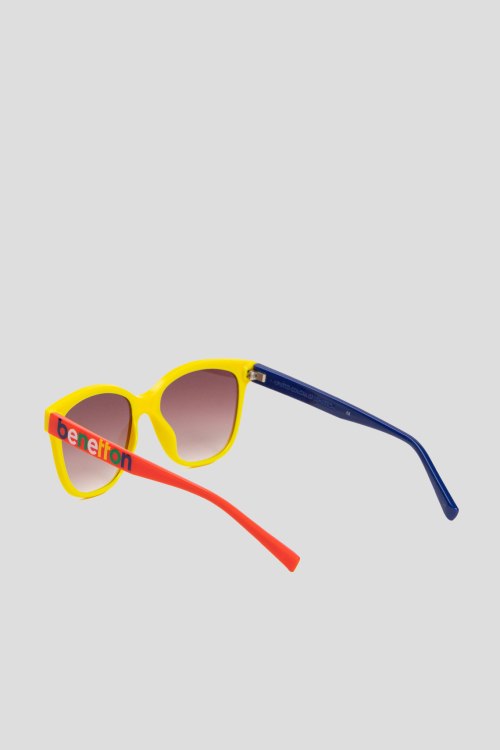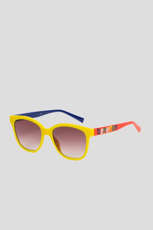 Детали: Женские желтые солнцезащитные очки от Benetton (Бенеттон). Желтая пластиковая оправа, мягкая квадратная форма, затемненная линза. Комплектация: чехол и салфетка