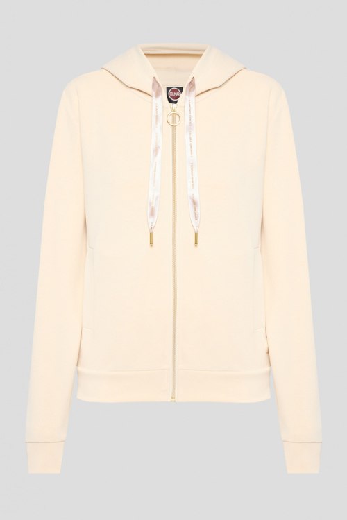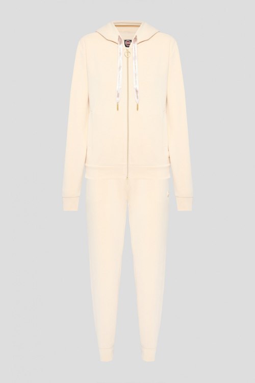 Детали: Женский бежевый спортивный костюм из модала и полиэстера от Colmar (Колмар). Спортивная кофта на молнии, вшитый капюшон с кулиской, два кармана, трикотажная резинка, зауженные брюки, эластичная резинка на поясе с кулиской, боковые карманы. Замеры: длина рукава: длинный, для размера S - 62 см, обхват груди: для размера S - 98 см, обхват талии: для размера S - 94 см, длина изделия по среднему шву спинки от горловины: для размера S - 58 см. Брюки: обхват пояса: для размера S - 80 см, обхват бедер: для размера S - 112 см, длина штанины: для размера S - 98 см, длина по шаговому шву: для размера S - 75 см