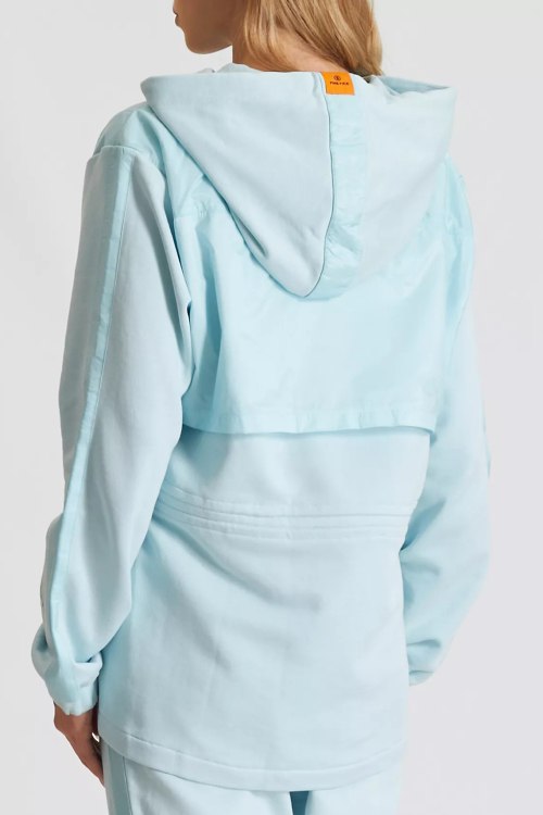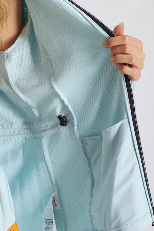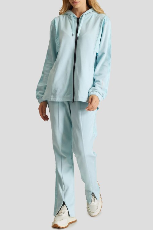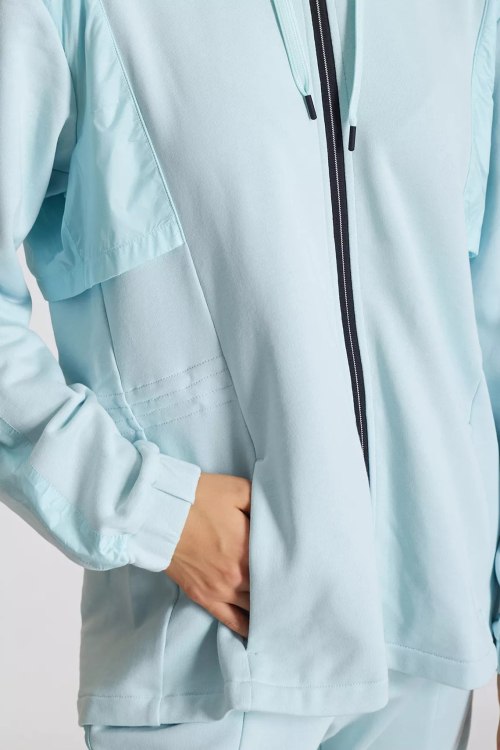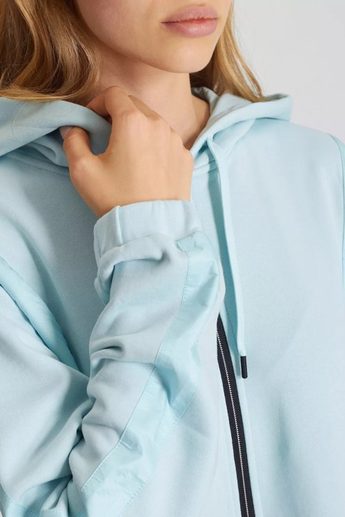 Детали: Женская бирюзовая хлопковая спортивная кофта Lillith от Bogner (Богнер). Капюшон на завязках, боковые карманы, застежка-молния, классическая длина